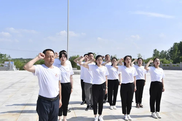“我志愿加入中國共產黨,擁護黨的綱領,遵守黨的章程……”在黨支部書記蔣愛兵同志的帶領下,黨員們高舉右拳,面對鮮紅的黨旗,莊嚴宣誓,再次接受思想淬煉和精神洗禮,共憶入黨初心,強化使命擔當。